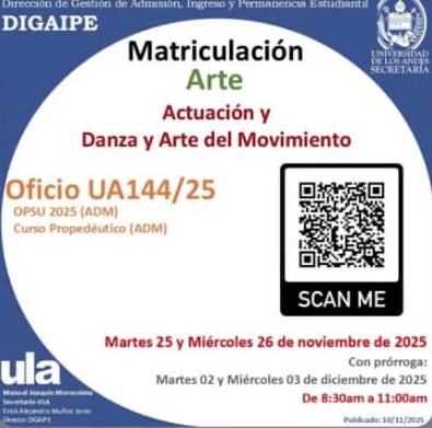 Correo Electrónico: facultadarteu@gmail.com Dirección: JV77+XRM, C. La Montaña, Mérida 5101, Mérida Edificio San José, Av. 5 Zerpa, con Calle 24, Mérida 5101, Mérida