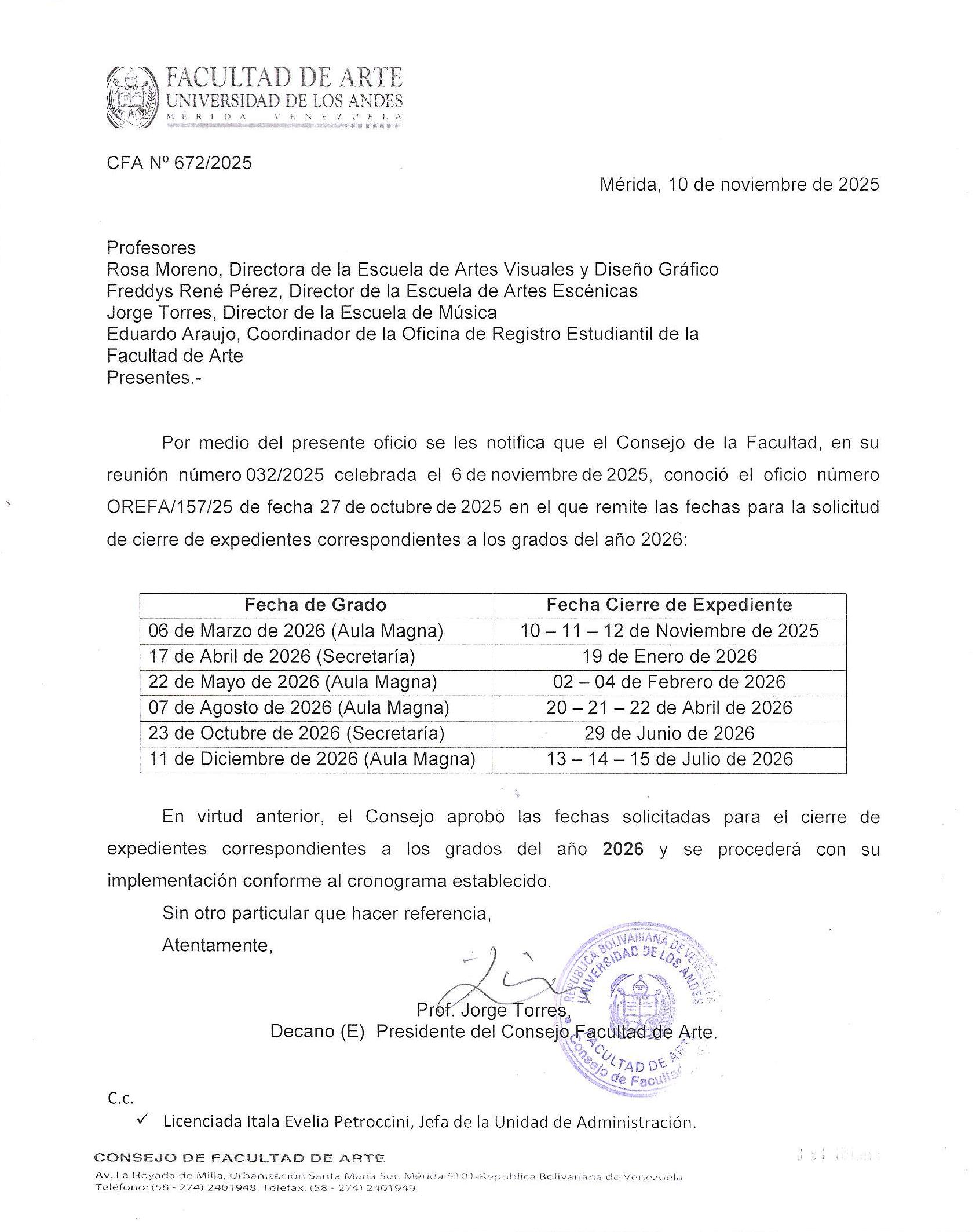 - Fundación de la Universidad de Los Andes: 29.03.2026