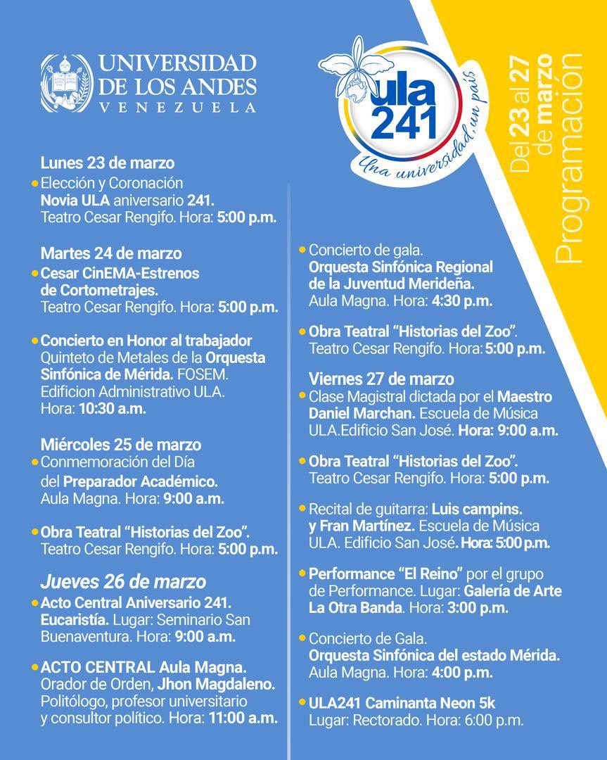 La Facultad de Arte de la Universidad de Los Andes se compone de varias escuelas vinculadas a las artes, incluyendo:
